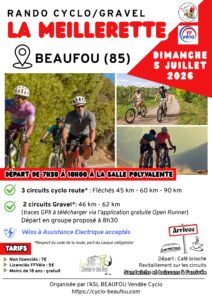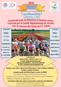 Les clubs vendéens organisent des manifestations tout au long de l’année. Dans le tableau ci dessous, vous trouverez les randonnées Route, Gravel, VTT et Marche ainsi que les brevets prévus au calendrier 2026.
