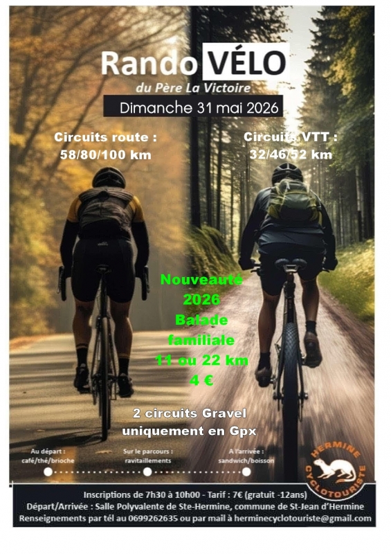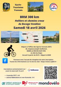 Les clubs vendéens organisent des manifestations tout au long de l’année. Dans le tableau ci dessous, vous trouverez les randonnées Route, Gravel, VTT et Marche ainsi que les brevets prévus au calendrier 2026.